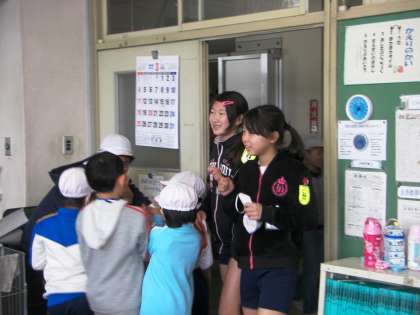 きてくれるのを待っています。中には、6年生の姿を見て、とびつく子も。