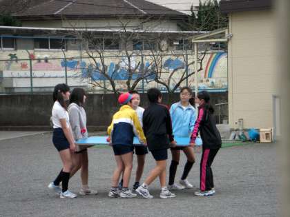 奉仕作業で色を塗り替えたジャンプ台を運んでいます。