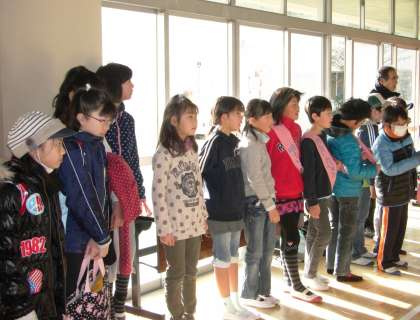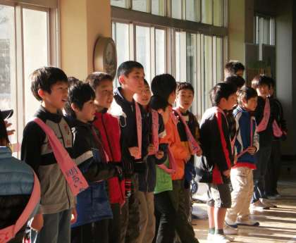 3月12日月曜日、今日は4年3組と5年3組があいさつ運動を昇降口で