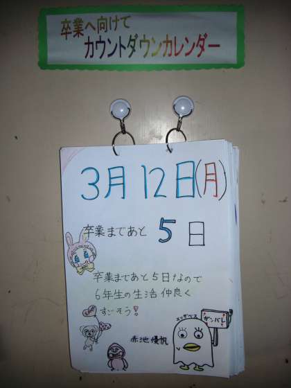 6年生の卒業カレンダーも残りが少なくなってきています。