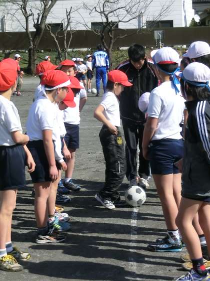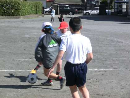 4年体育では、学級対抗戦でサッカーのゲームをやっています。