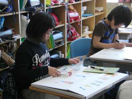 3年生も作品バックを作っています。今週末には持ち帰ります。