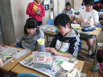 ペットボトルを使って、ランプを作っています。ペットボトルとは思えませんね。