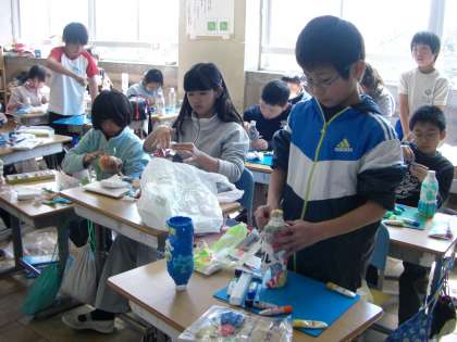 1組もペットボトルのランプを作っています。