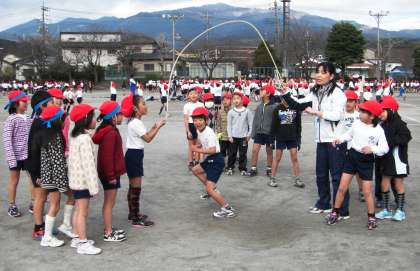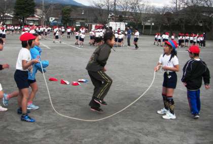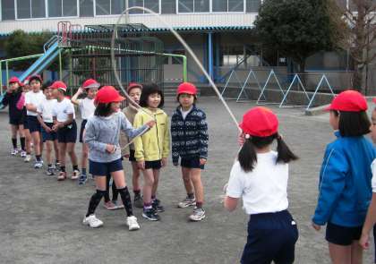 2年生の朝運動は長縄です。縄はかなり早く回っていますが、どんどん跳んでいきます。