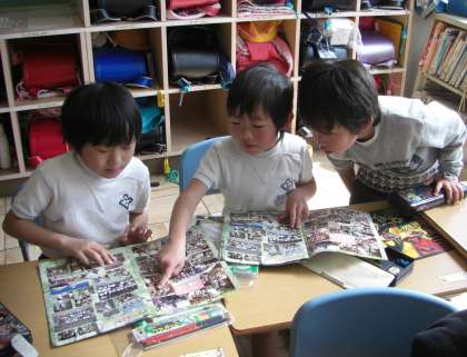 「ぼくがいた。」「お兄ちゃんを発見。」食い入るように見ています。