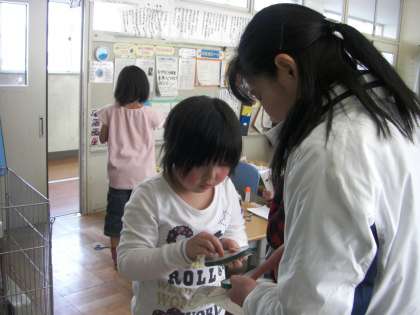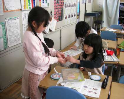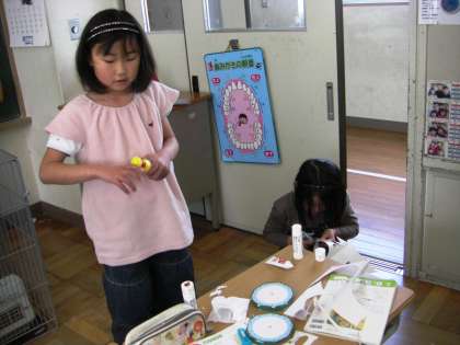 2年生がルーレットを作っていました。円形の工作は難しいようです。