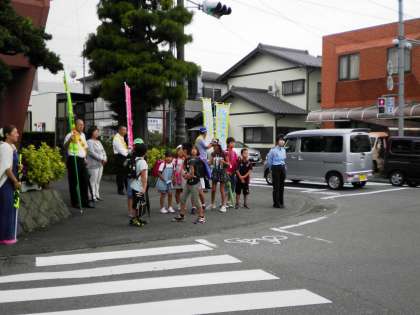 通学路でも、多くの方が富一小の子どもたちを見守ってくれました。