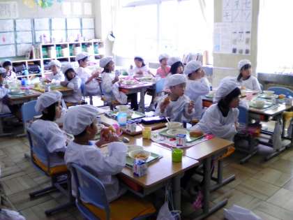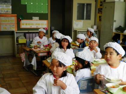 給食もおいしいのですが、ついつい画面に見入ってしまいました。