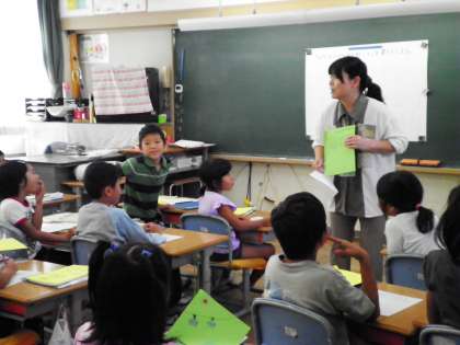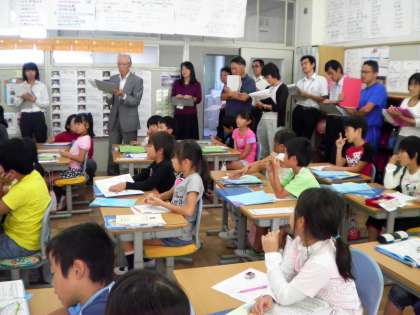 今日はお客様を招いて、富一小の先生方が、2年生の授業をみています。