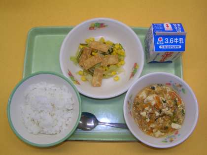 ご飯・牛乳・マーボーどうふ・パリパリサラダ