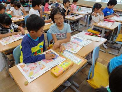 「人形の夢とめざめ」という曲を鑑賞している2年生。聴きながら体が自然に動き出したり、表情が次々と変化したりして、曲の感じを思い思いに表現し始めました。とても表現豊かです。人形のセリフまで想像し合っています。
