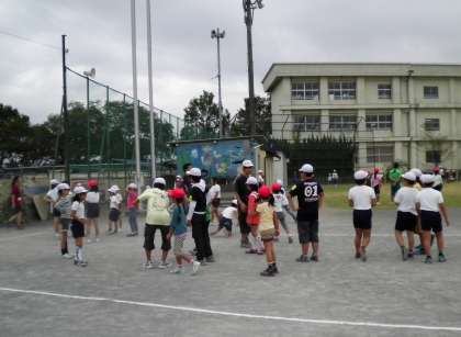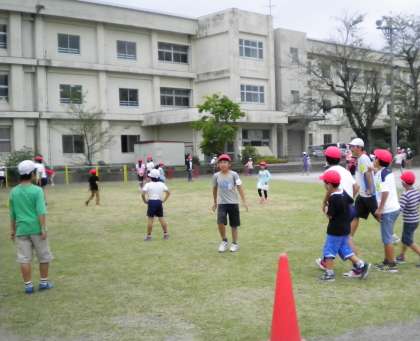 ルールの確認がおわり、本格的に遊びが始まりました。運動場一面を
