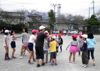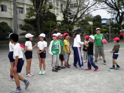 まずは運動場の地区ごとに決めた集合場所に集まりました。