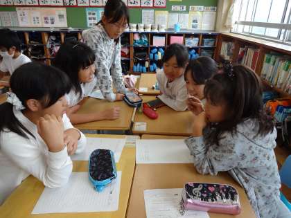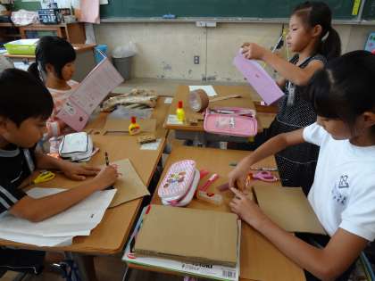 5年生がグループごとでいろいろなアイデアを出し合っています。計画から実行まで自分たちの手でやり通そうという意気込みがあふれていました。