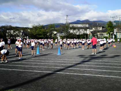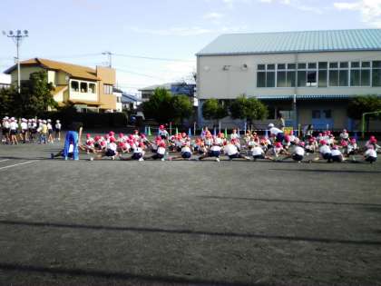昨夜の雨もあがり、朝運動が外でできるようになりました。