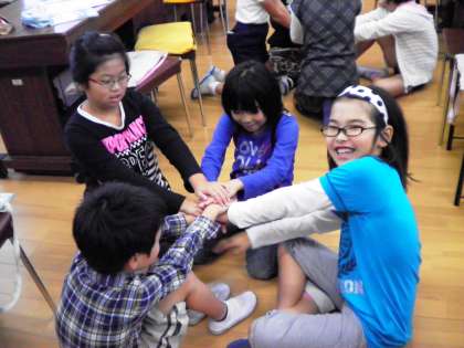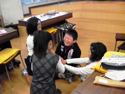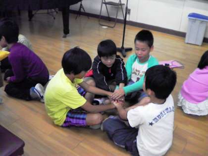 授業の最初の手あそび歌です。みんなで歌を歌いながら、体を動かします。