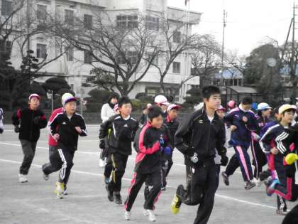 駅伝の朝練も3日目となりました。寒い日が続いていますが、