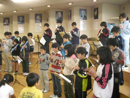 5年生はお客さんを前に、少々緊張した面持ちで演奏を行っていました。一方の2年生は興味津々で、リコーダーをはじめ、その他の楽器の音色に耳を傾けていました。