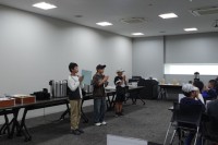 音楽で合奏の発表会を行いました。始まる前にグループごと合わせる練習を何度も繰り返...