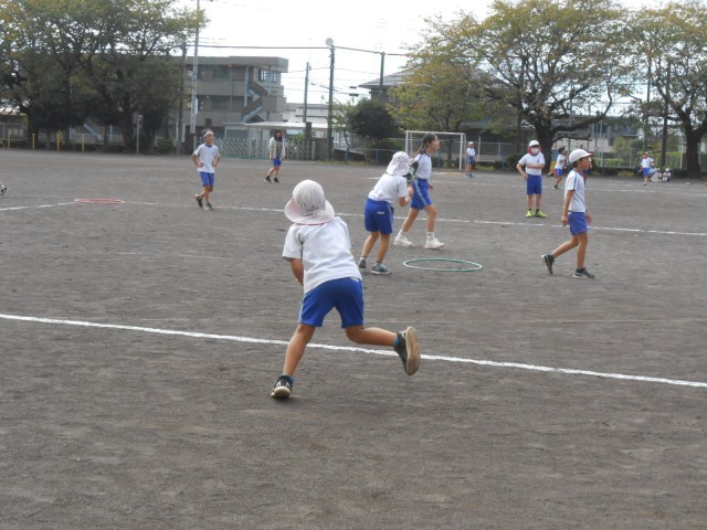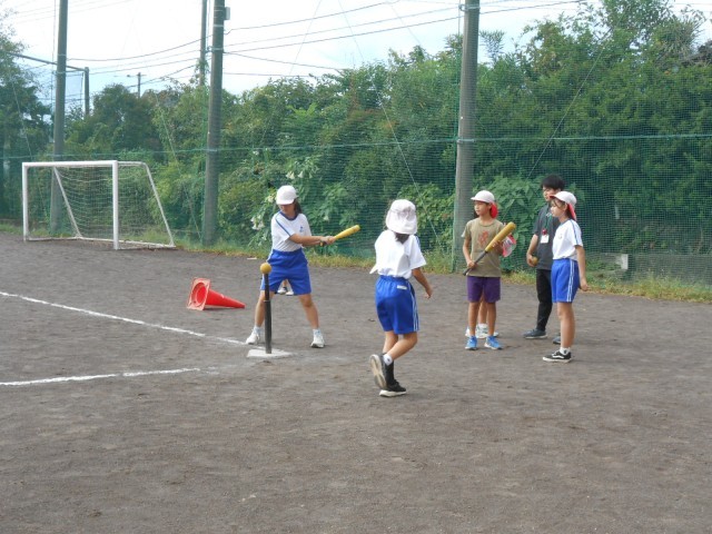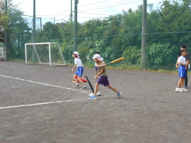 5年生。ティーボールで盛り上がっています!大きな声で声をかけあって、仲間を応援していました♪