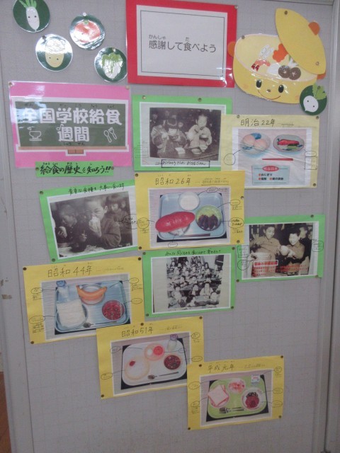 24日が土曜日ということで、東小ではこんしゅう1週間を学校給食週間としています。