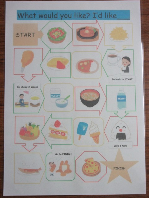 すごろくの要領で、英会話に親しんでいる5年生です。