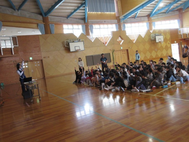 朝方に降った雨の影響で、室内での自転車教室になりました。