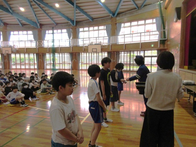学校の安全を守るリーダーである6年生に、リーダーワッペンが渡されました。