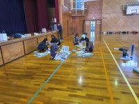5年生の様子です。作品を吊るしたり、汚れた床を拭いたり、新聞紙を配ったり、サポーターの方はやる事が多くて、大変だったと思います。おかげで子どもたちは、狭い教室で書くのとは違い、落ち着いてのびのびとした...