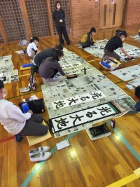 4日間の最後は3年生。初めての書き初めです。道具も新しいので筆をおろしていない子がたくさんいました。まずは、筆のおろし方から書道連盟の方が教えてくれました。ぬるま湯につけながら少しづつほぐしていきます...