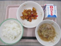 ☆こんだて☆ ごはん 牛乳 厚焼き玉子 野菜のごま昆布炒め 肉豆腐