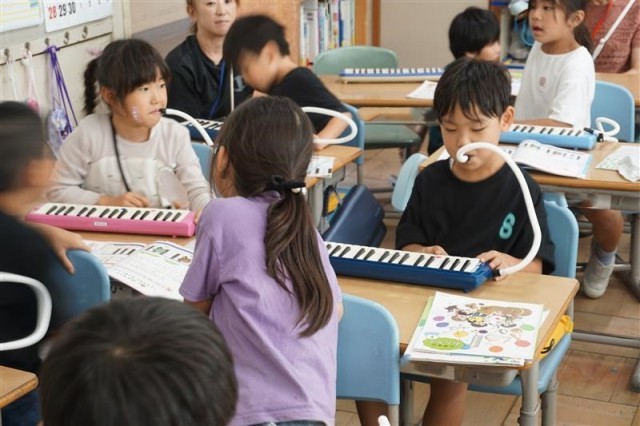 音楽では、音をよく聞きながら鍵盤ハーモニカを弾きました。