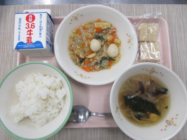 ☆こんだて☆ ごはん 中華丼の具 牛乳 おこげスープ (おこげ)