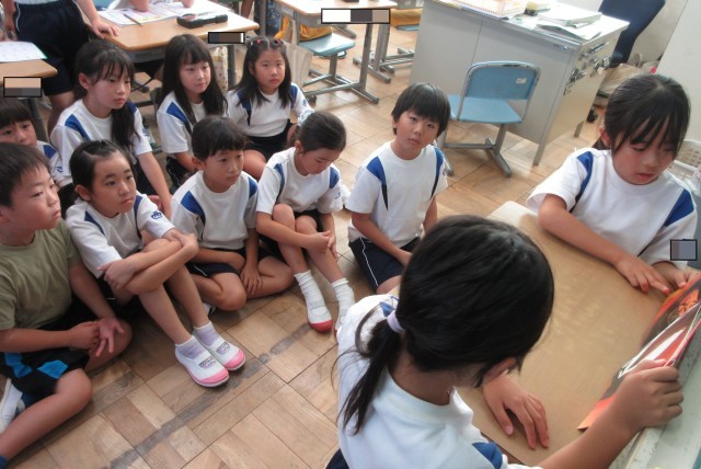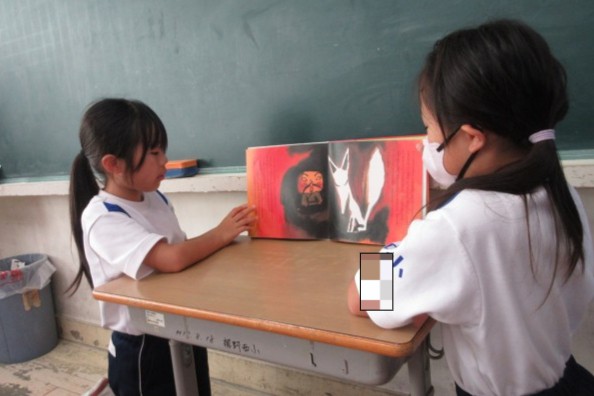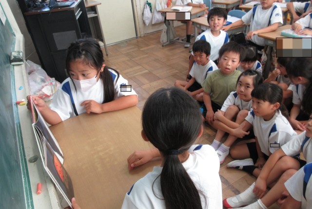 朝の読書の時間を使って、係の子が読み聞かせをしています。本日の本は、「すいとん先生と化けの玉」。長めのお話でしたが、係の子が頑張って読んでくれました。絵もおもしろく、見ている子たちも楽しんでいました。