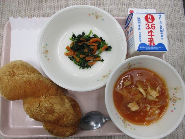 ☆こんだて☆ きな粉揚げパン 牛乳 二色ソテー ミネストローネ