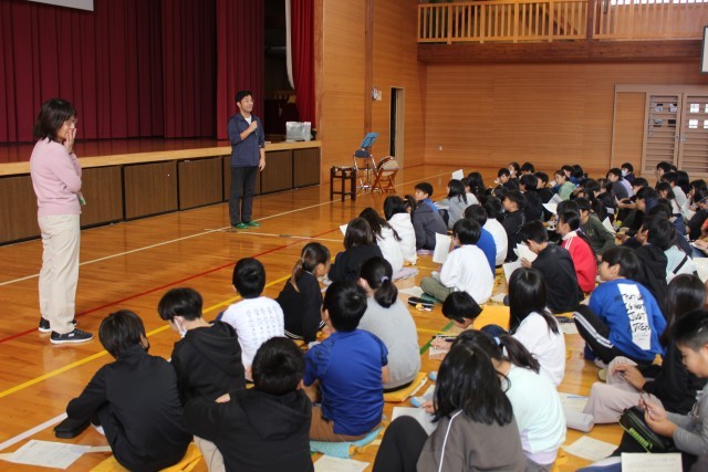 今回は昨年度まで本校で勤務されていた岩﨑先生をお招きし、民謡について学びました。