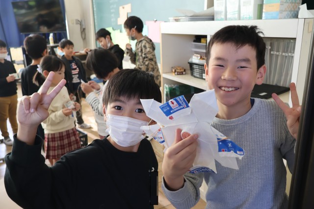 2年生生活科では、牛乳パックを使ったおもちゃ作りをしました。