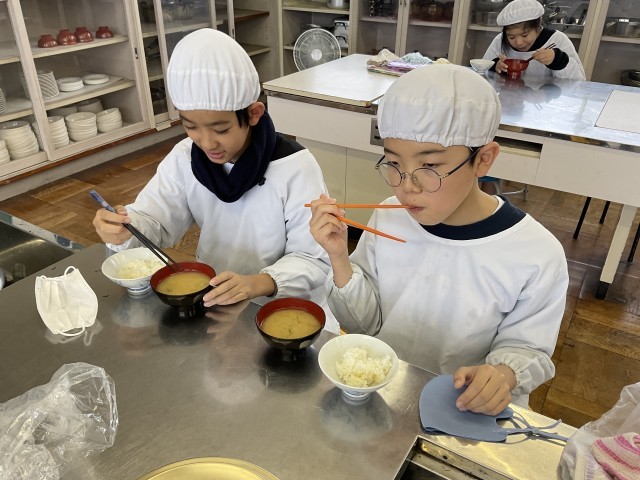 5年生の調理実習はご飯とみそ汁です。