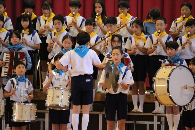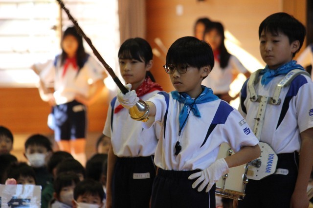 伝統の会では、6年生から5年生へと鼓笛が移杖され、西小学校の伝統と最高学年としての責任感を受けつぎました。