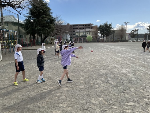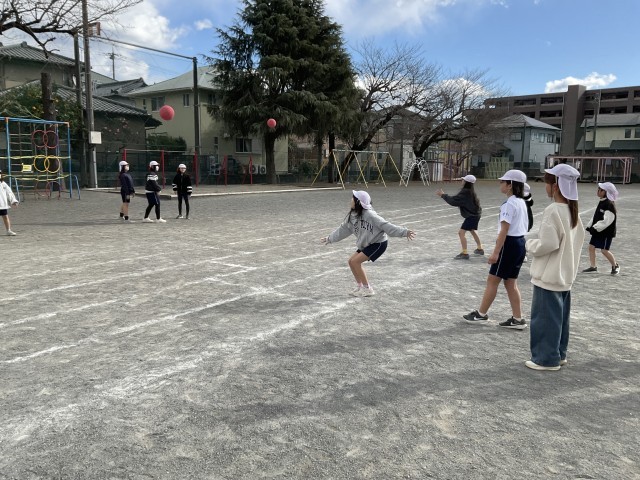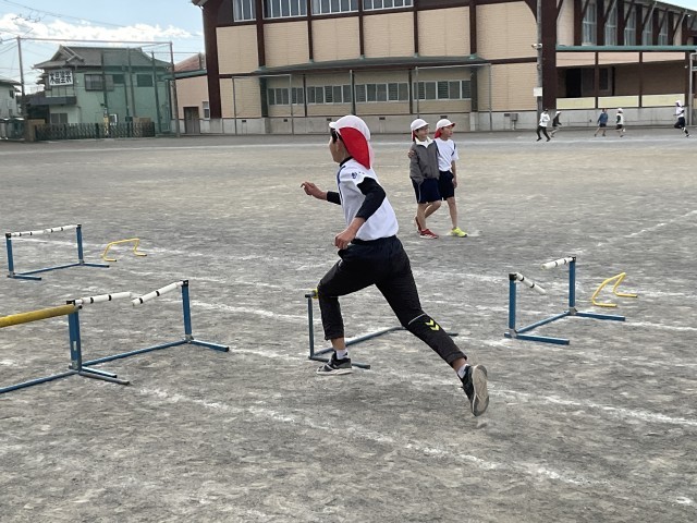 寒い日が続いていますが、子どもたちは、ドッジボールラリー、ハードル走にチャレンジしています