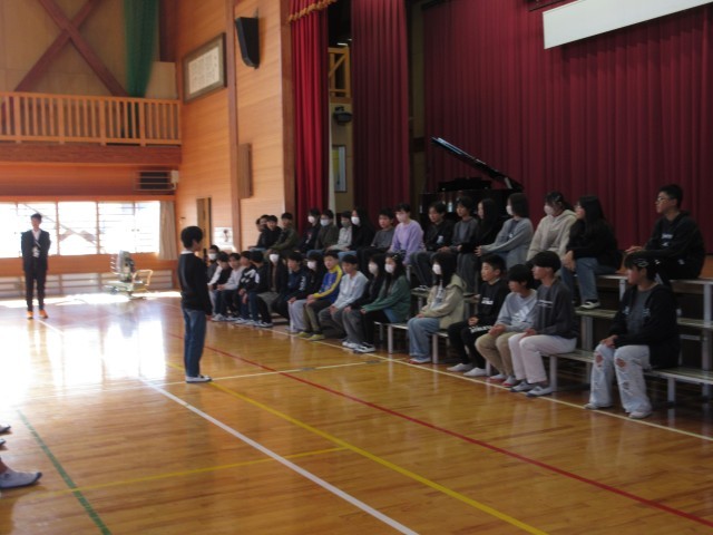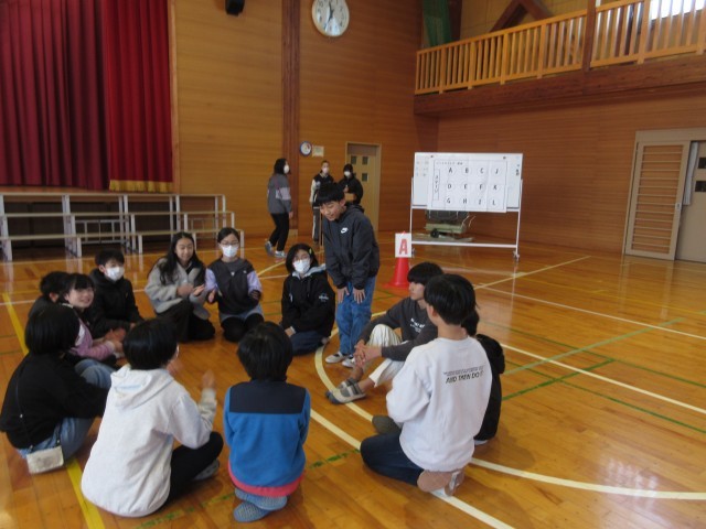 それぞれの校歌を披露し合い、そのあとグループごとでゲームをして、交流を深めました。