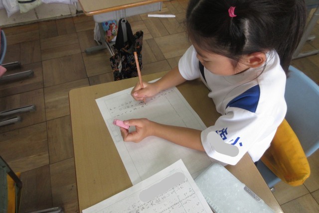 作文の書き方に気を付けながら、一生懸命自分の思い出について書いていました!