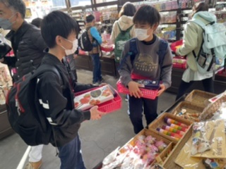 一生懸命お土産を選んでいます。色々なお土産があって迷います!