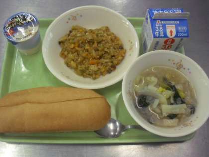 ・背割りロールパン ・ぎゅうにゅう ・ビーンズドライカレー