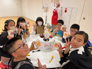 カップに色をつけたり、絵を描いたりして自分だけのカップが完成しました!
