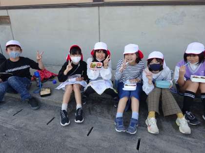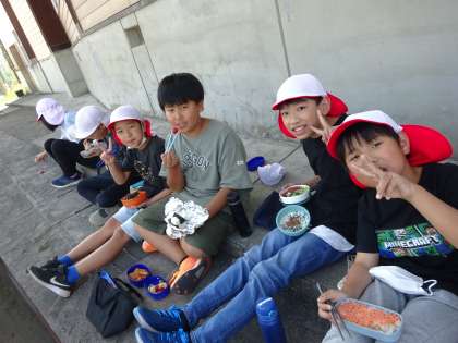 天気がとっても良かったので、みんなで外でお弁当を食べました。