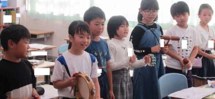 「かぼちゃ」という曲を歌い、楽器を奏でました。 あたたかい歌声が教室に響きました。