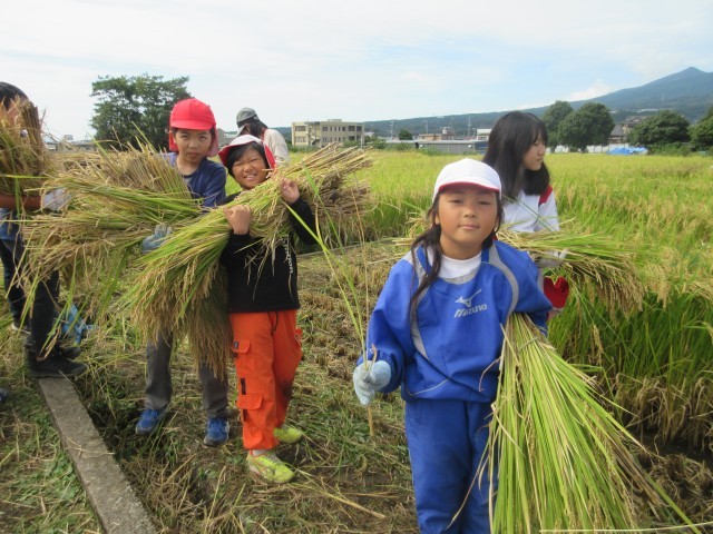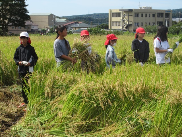 終わった後、「昔の人は、こんな大変なことを手作業でやっていたんだな。」という感想をもったり、「友達が上手に稲刈りや刈った稲を縄でしばることをしていてすごいな。」と、友達の良さに気付いたりしていました。