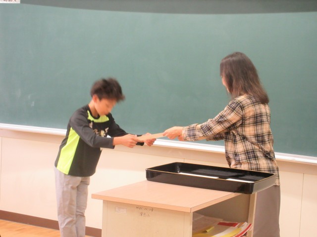 名前を呼ばれると大きな声で返事をし、立派な態度で任命書をもらうことができました。